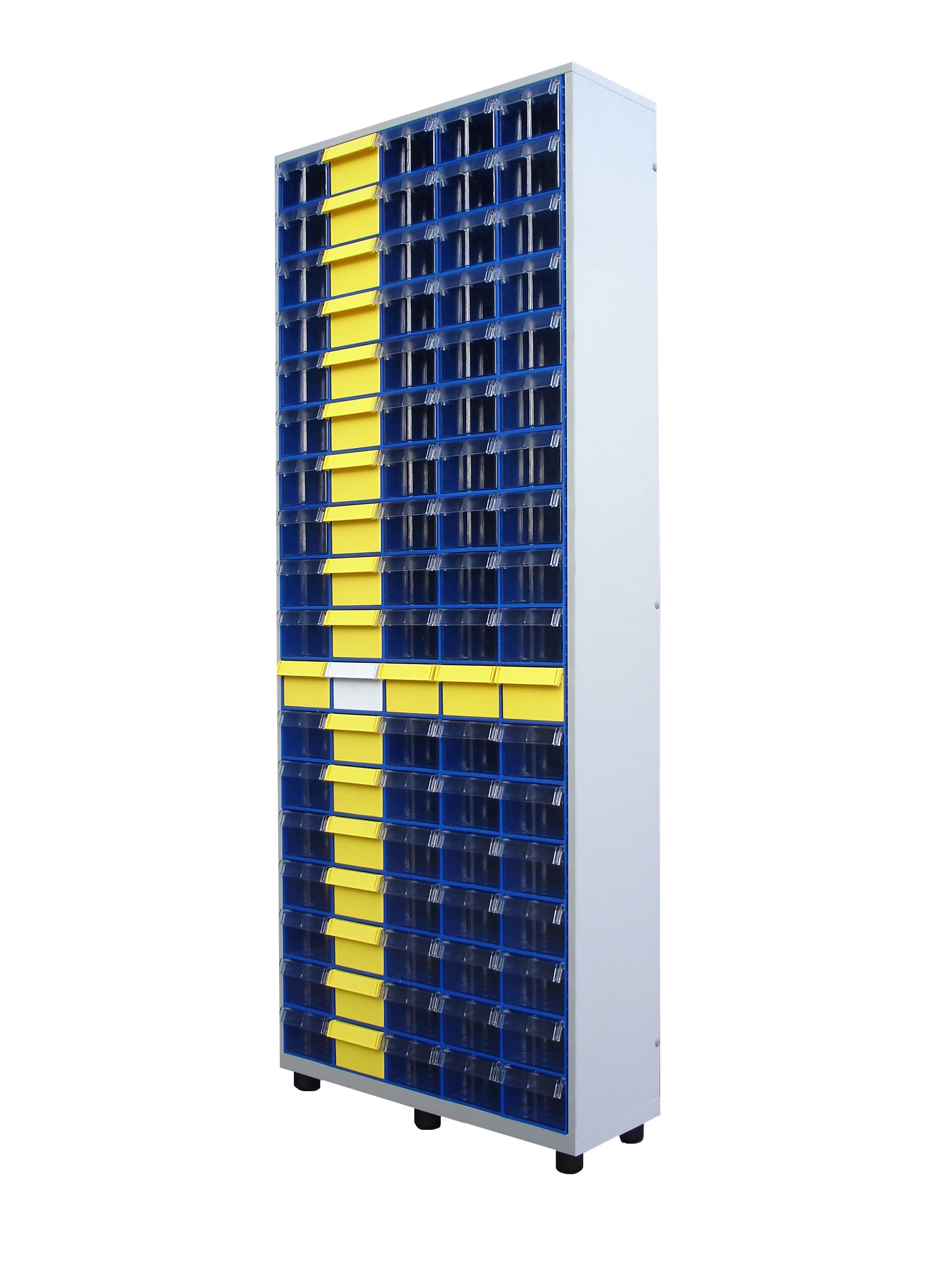 Шкаф в сборе Стелла-техник С-2-90 на 90 коробов (ЛДСП) отлично впишется в интерьер любого склада, подсобного или торгового и офисного помещения. Цвет ламинированного ДСП - серый. Цвет коробов С-2 синий, прозрачный. Главная особенность шкафа – объединение большого количества коробов с определенным типовым размером. Регулируемые ножки шкафа гарантируют устойчивость шкафа даже на неровных полах. Изделие допускает одновременное применение 90 пластиковых складских контейнеров. Прозрачные внутренние короба С-2 позволяют легко находить содержимое и контролировать полноту наполнения. Внутренний короб легко вынимается для опустошения или наполнения, по принципу спичечного коробка. Он имеет рельефную структуру днища и усиленные толстые стенки. За счет этого, изделие справляются с высокими эксплуатационными нагрузками. Внутренние полезные размеры выдвижного короба: 220х123х80мм. Возможность установки одной продольной перегородки (артикул: С-2 продольная) или до трех поперечных (артикул: С-2 поперечная). Продольная и поперечная перегородки одновременно не устанавливаются. Перегородки в комплект короба не входят и поставляются отдельно. Рекомендуемая нагрузка на короб, в составе шкафа, не более 3кг.