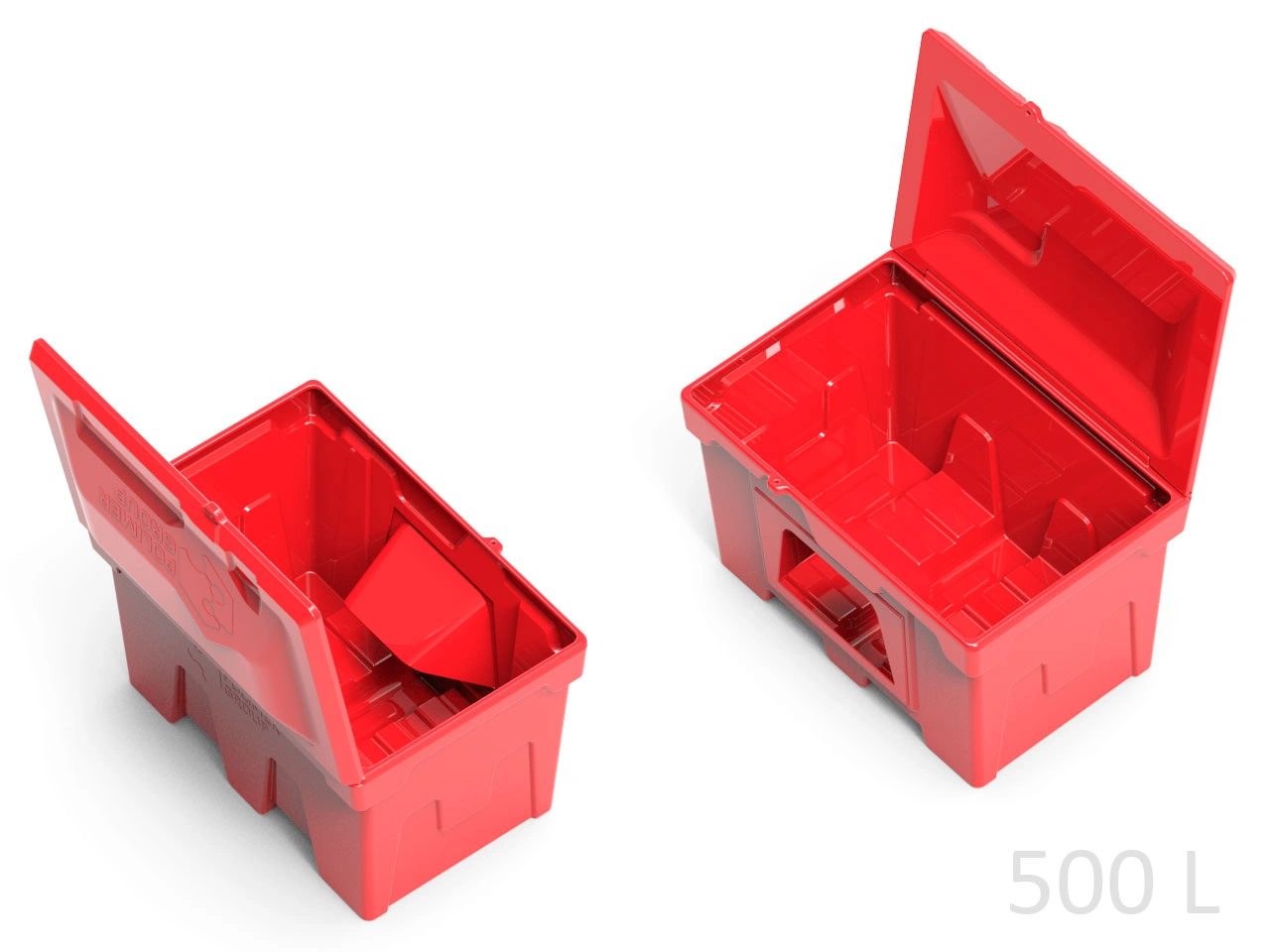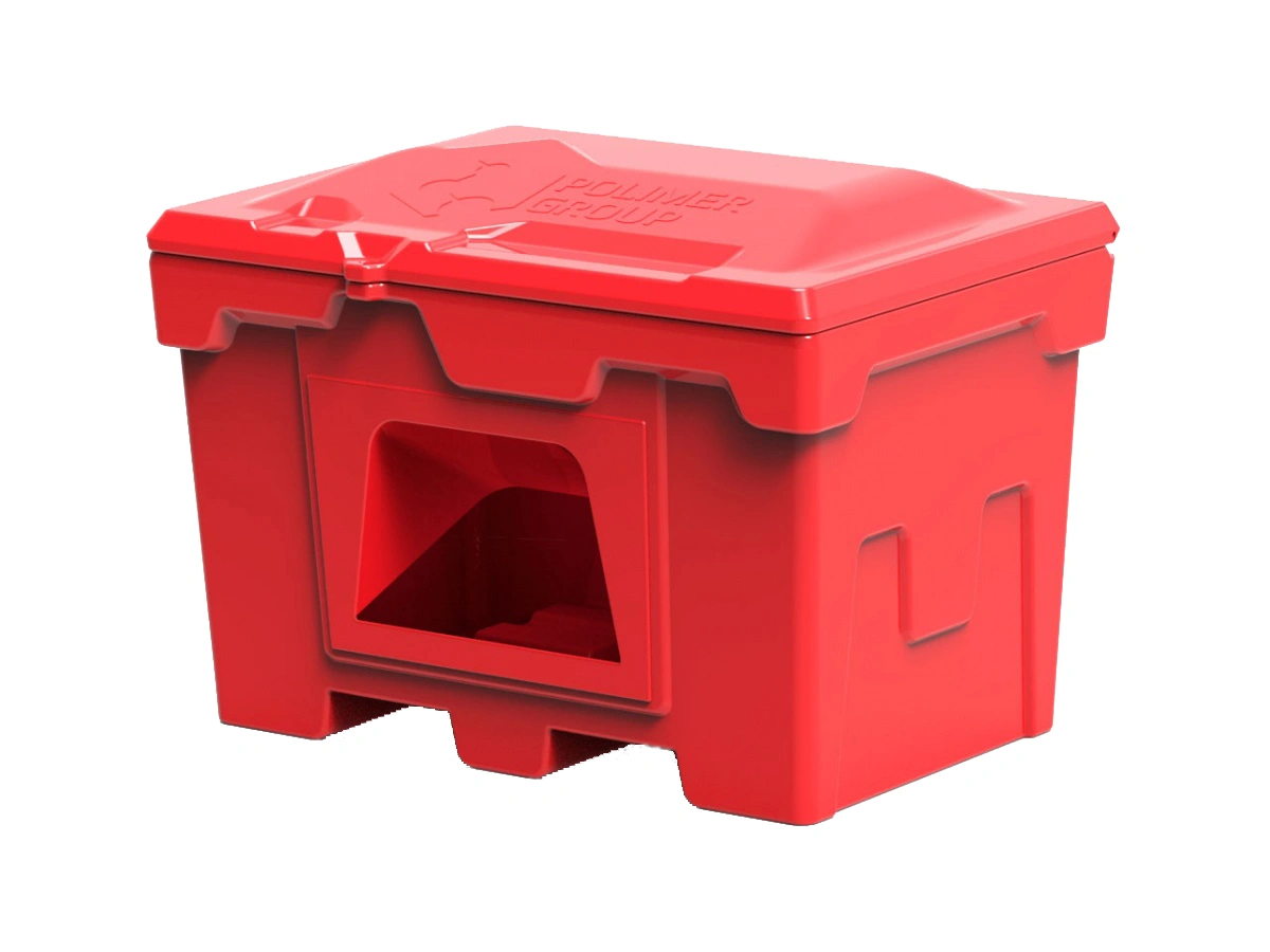 Объем контейнера для песка 500 л. Предназначен для хранения песка, применяемого для тушения пожаров на заправочных станциях. Изготовлен из полиэтилена методом ротоформования, что придает особую прочность.